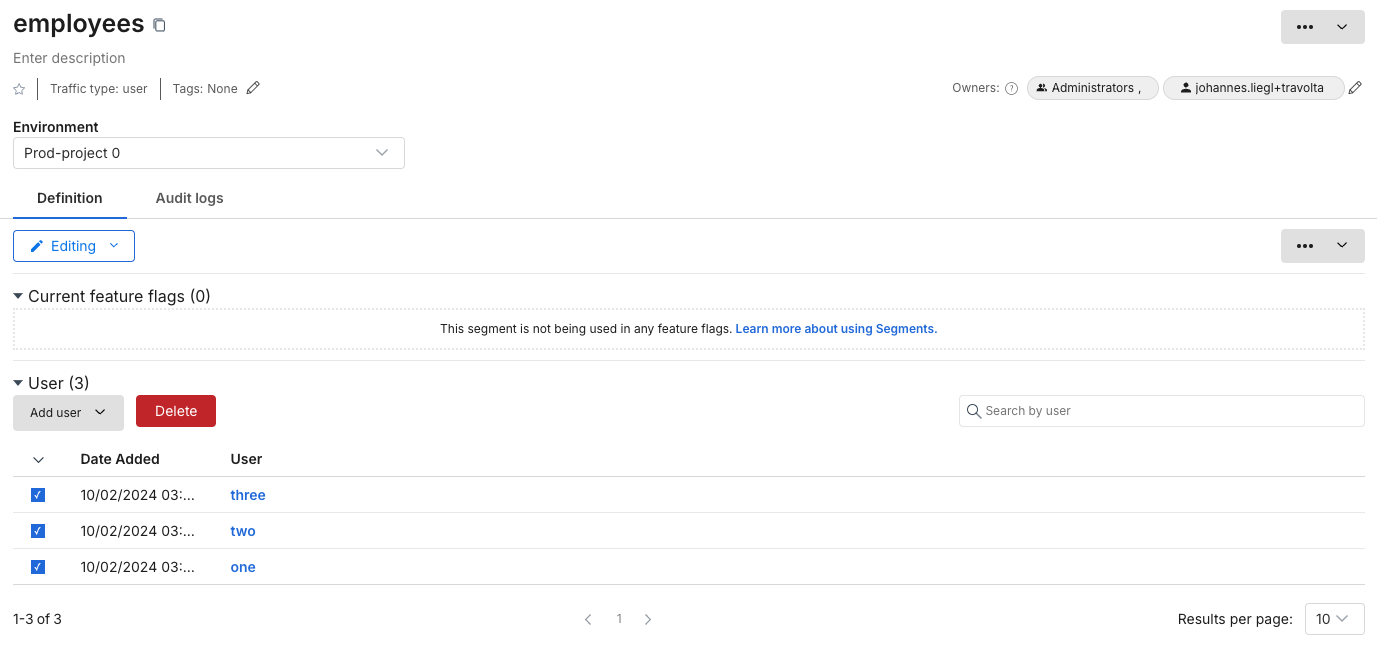• Then, delete the segment definition and repeat these steps for all environments.