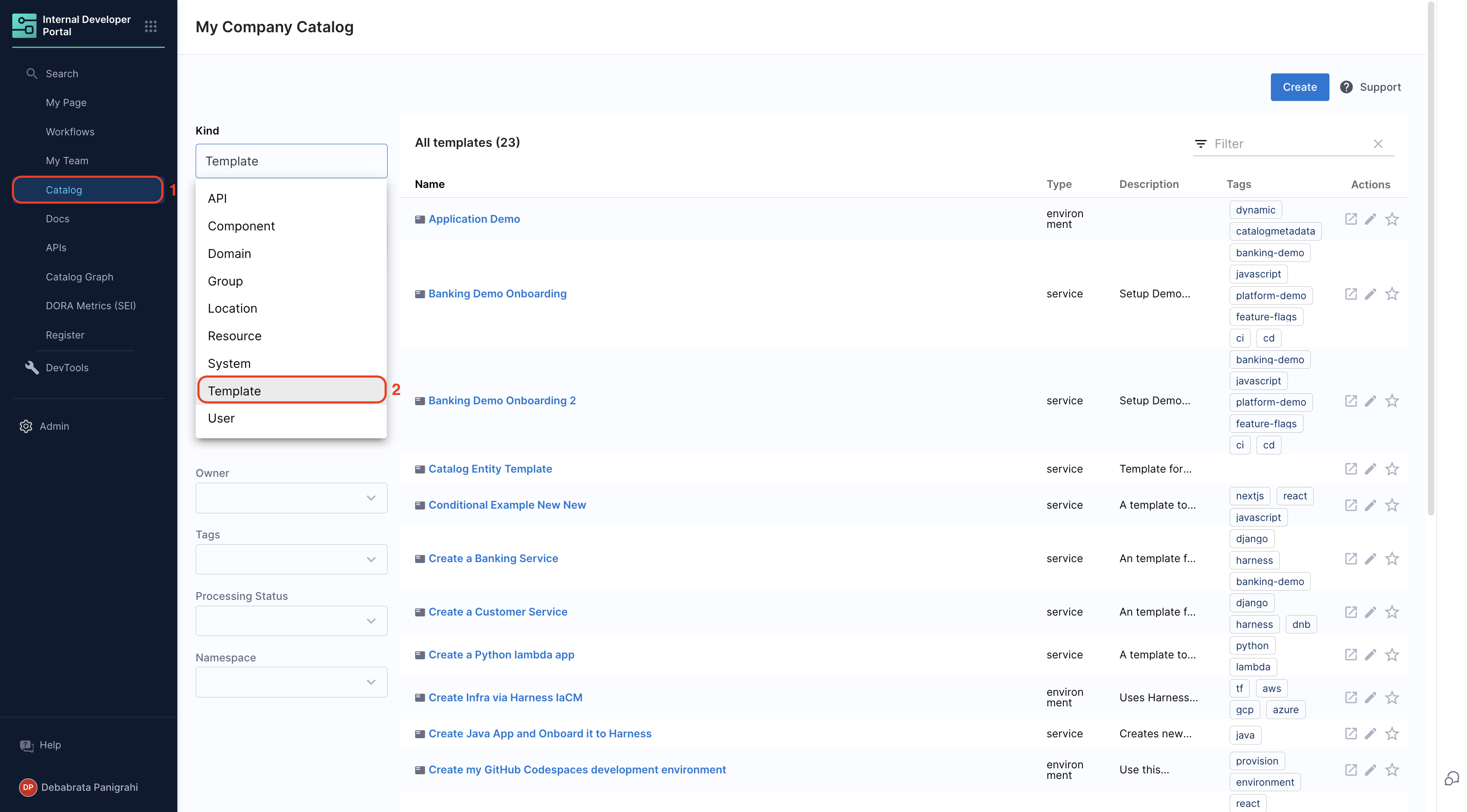 - Navigate to the Catalog page in Harness IDP.