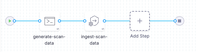 The following pipeline shows an end-to-end ingestion workflow. The pipeline consist of a Security stage with two steps: