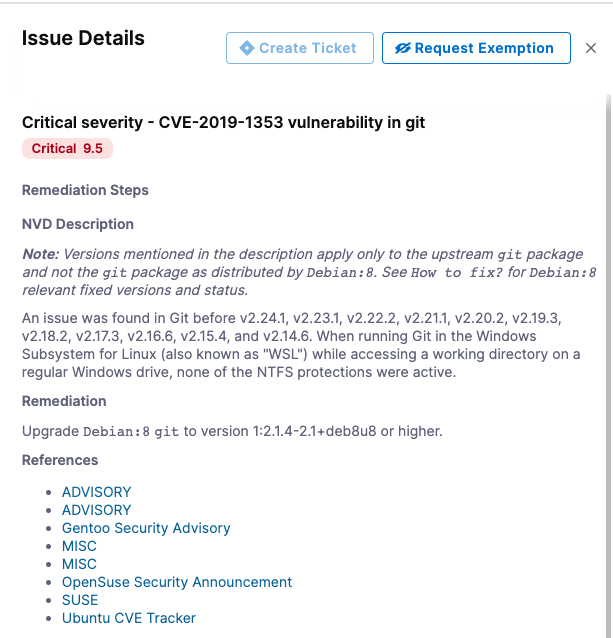 The Issue Details pane has useful information for troubleshooting your security vulnerabilities.