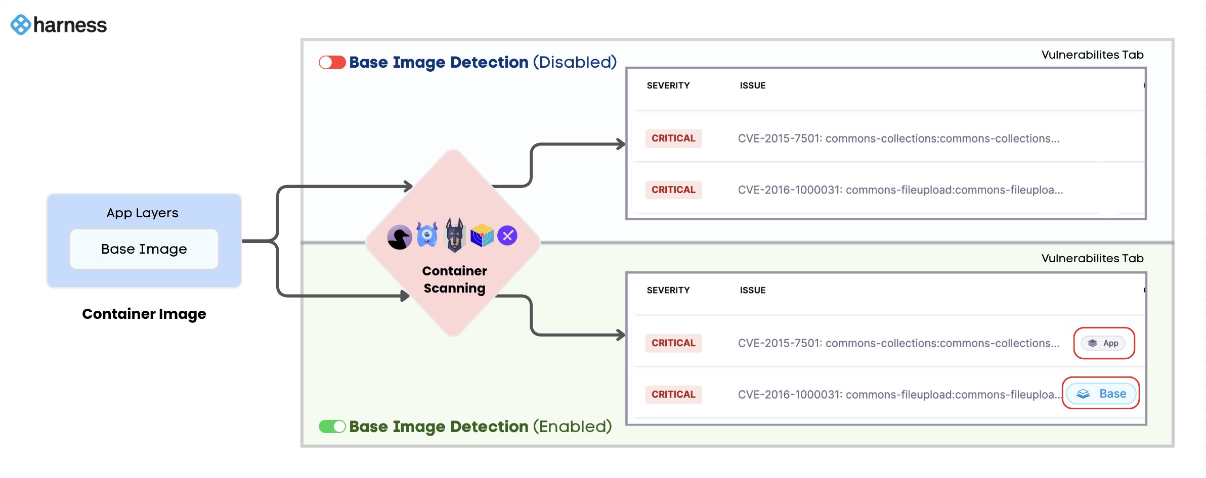 This feature is behind the feature flag STO_BASE_IMAGE_DETECTION. Contact Harness Support to enable this flag.