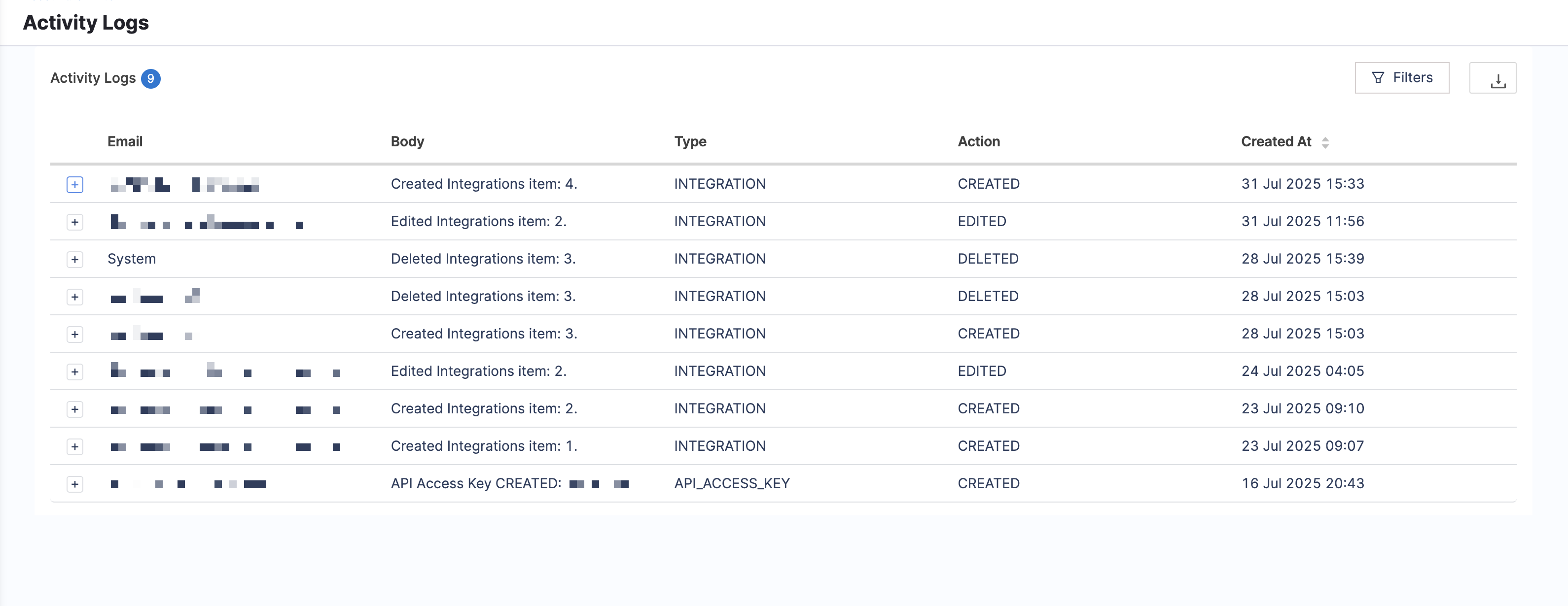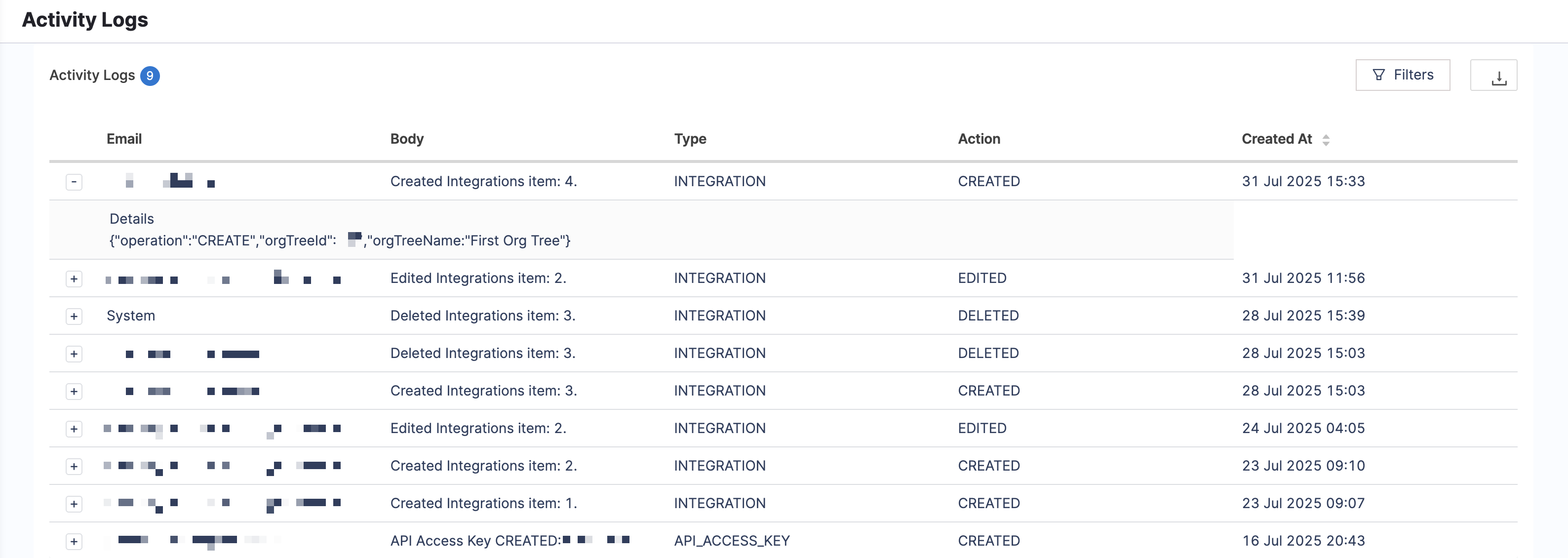 Use Activity Logs to keep your organization audit-ready and ensure that all critical changes are fully tracked.